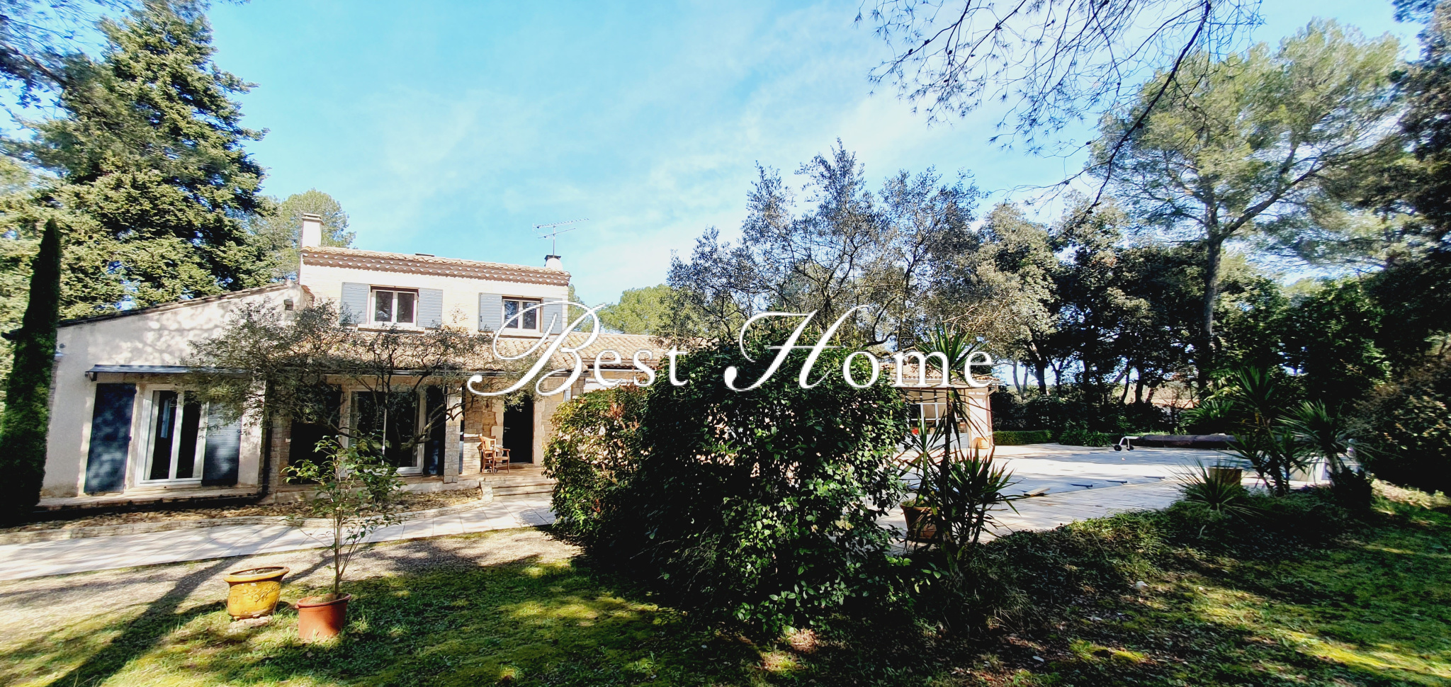 Nîmes (30000)Sur les Hauteurs de Nîmes, Best Home vous présente en Nouveauté cette Villa de charme de 154 m² habitables en parfait état. Elle se compose d'un hall avec toilettes indépendant, une belle cuisine avec plan de travail en granit, vue sur la spacieuse terrasse qui se déroule devant la maison et qui borde la piscine, une belle pièce de vie de 51 m² permet d'accueillir les convivent et la cheminée avec insert en pierre de Vers complète la pièce, les ouvertures permettent de rejoindre la terrasse, l'exposition est sud-ouest lui confère un ensoleillement maximal. Un premier cellier de 4 m², puis un second avec la buanderie de 17 m², une suite parentale de 16 m² avec accès sur terrasse et vue piscine, un dressing 4,2 m² et une salle d'eau avec toilettes suspendus douche italienne de 6 m² complète l’ensemble. L'étage offre une chambre ou bureau de 8,2 m², une chambre de 15,6 m² avec plafond cathédrale, une salle d'eau avec toilettes 2,1 m². Le terrain est entièrement clos et arboré, magnifique pool house de 27 m² (avec toilettes, eau, électricité, BBQ) grande baie en fer forgé ouvrant au sud sur la terrasse avec piscine. Le garage de 28 m² avec mezzanine et car-port pouvant abriter deux véhicules, une serre.