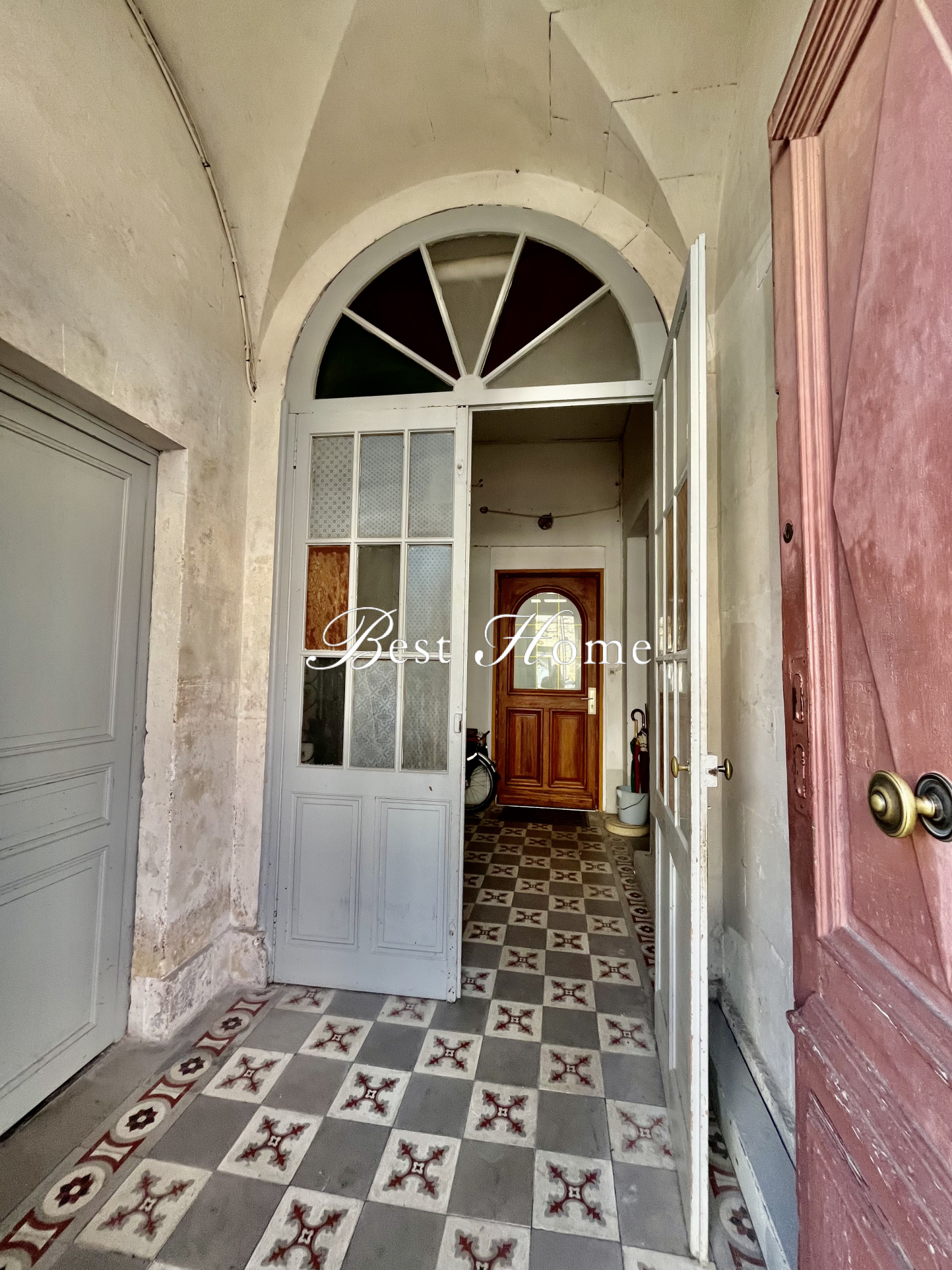 L’immeuble se distingue par son charme d’époque : belle entrée, carreaux de ciment, escalier ancien.